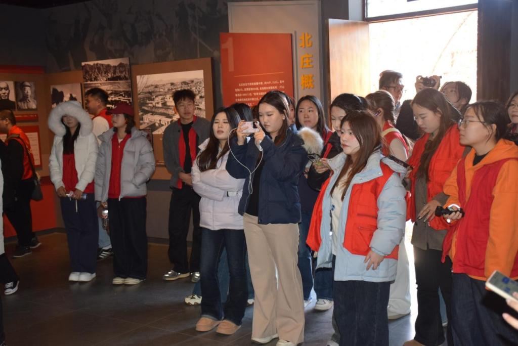 下午,师生前往北庄村、中央统战部旧址及曹火星纪念馆参观学习。在北庄村——《团结就是力量》的诞生地,同学们齐声唱响这首铿锵激昂的经典歌曲,深切感受歌词中凝聚的团结奋进精神。村史馆内珍藏的歌曲手稿与首次演出的珍贵剧照,生动再现了那段峥嵘岁月,深深触动着在场的每一位师生。