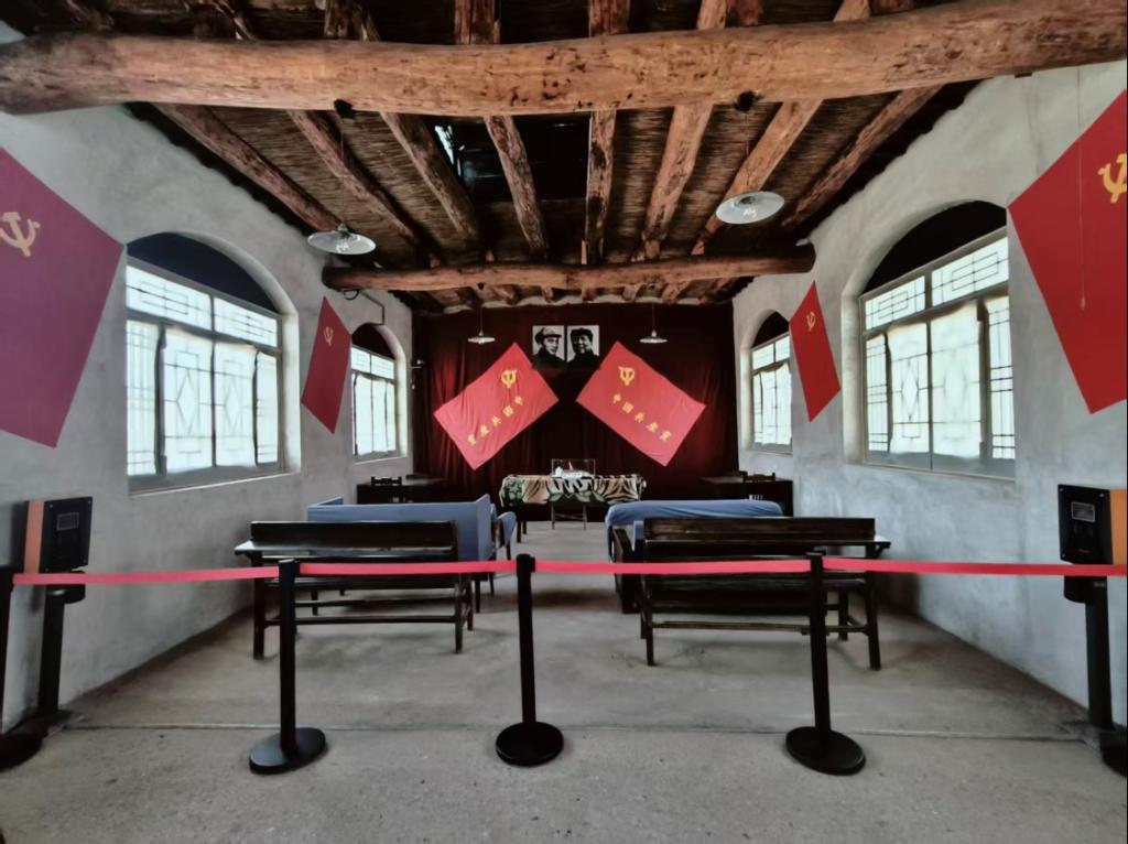 在紧邻纪念馆的西柏坡中共中央旧址,低矮的土坯房、简陋的办公桌椅无声诉说着革命年代的艰苦卓绝。西柏坡是解放战争时期中央工委、中共中央和解放军总部所在地,党中央解放全中国的“最后一个农村指挥所”。这里分布着中央军委作战室、九月会议旧址、七届二中全会旧址等多处建筑。师生们一边仔细观看文物陈列,一边聆听文物背后的动人故事,通过沉浸式的参观体验,深入了解了西柏坡的光辉历程。