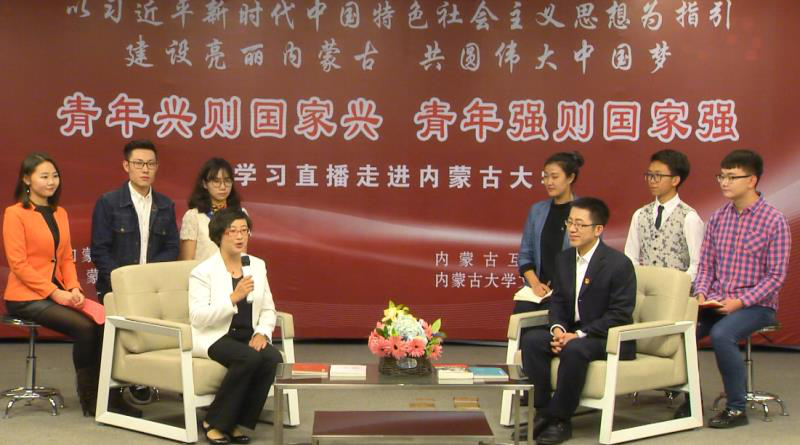 本场活动是内蒙古日报社《学习直播》“进”系列融媒体报道活动之一,也是我院一项重要的实践教学内容和学习十九大精神活动。节目录制活动邀请了我校马克思主义学院副院长傅锁根、我院青年教师许晋以“青年兴则国家兴,青年强则国家强”为主题,与我院的师生一起解读了习近平总书记十九大报告中关于新时代青年的使命和任务的讲话精神。