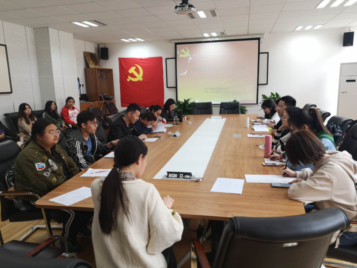 4月18日下午,太阳集团tyc9728本科生党支部在艺术楼会议室开展了4月份党日活动。本次活动由本科生党支部副书记任文秀老师主持,本科生党支部全体党员与预备党员参加了这次活动。