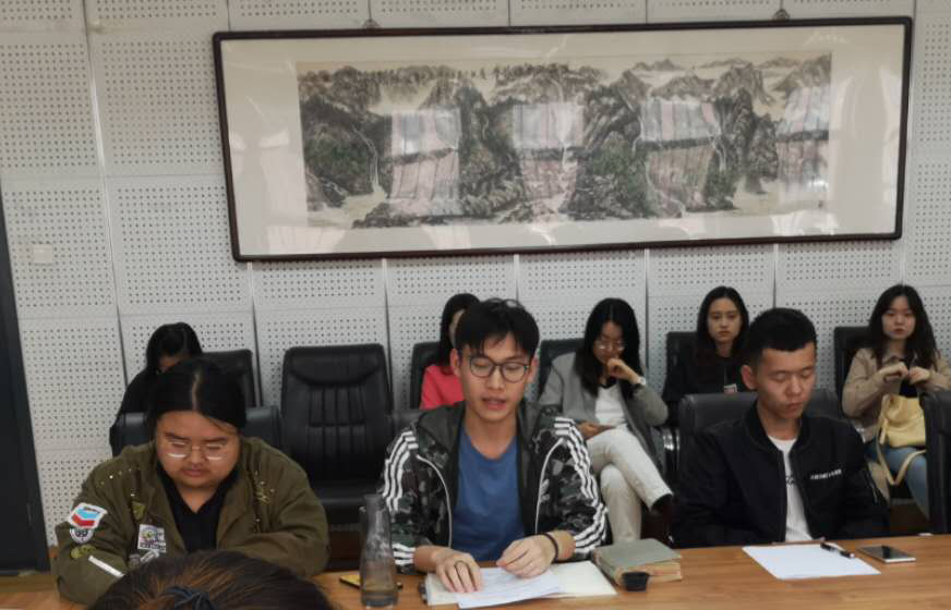 新闻组的赵柯同学则谈到了文化是一个民族的灵魂,新的时代呼吁新的文学家。他从本专业角度谈了有关文学发展的四个方面:一是时代性。新闻创作要和时代同呼吸、共命运,要顺应互联网和新媒体的发展热潮,通过不同的渠道制作不同形式的新闻,同时充分利用大数据和人工智能;二是坚持以人民为中心,想人民所想,讲人民所讲;三是要拿精品内容奉献给人民。在碎片化经济时代,新闻产品应该提供更优质的内容;四是坚持用民德引领风尚,结合翟天临事件谈了文艺工作者的个人品德以及要对平凡人进行人文层面的关照。
