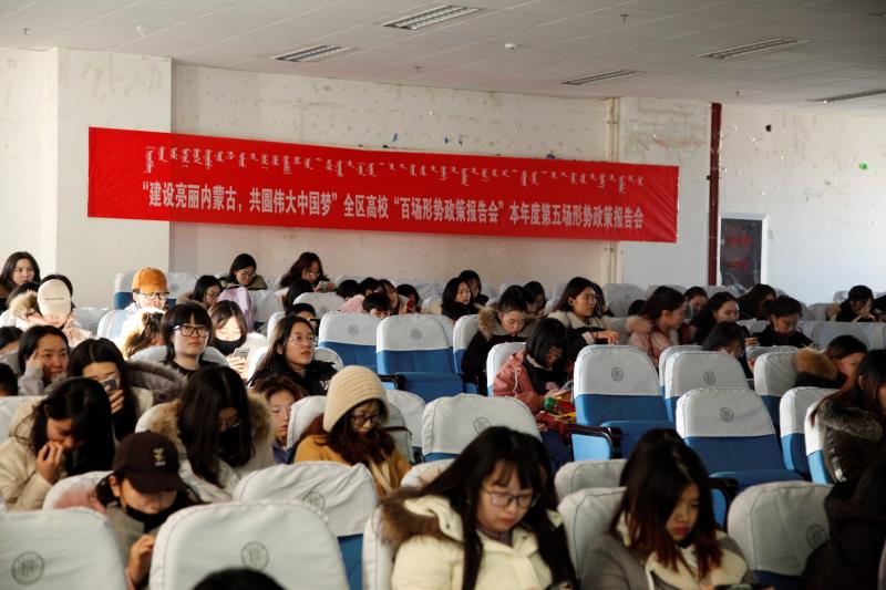 12月19日下午3:00,我院在主楼阶2A教室举办了本年度第五场“建设亮丽内蒙古,共圆伟大中国梦”全区高校“百场形势政策报告会”。报告会由我校化学化工学院副院长白凤华副教授主讲。学院党总支副书记吴栓虎主持了本次报告会,本科生辅导员任文秀老师和200余名本科生、研究生共同参加。