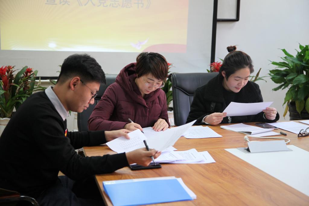 12月7日下午,本科生党支部召开第四次全体党员大会。会议以讨论冯君瑞等14名发展对象转为预备党员为主要议题,严格按照预备党员发展流程进行。冯君瑞等14名同学逐一宣读了《入党志愿书》中本人填写的部分,汇报自己对党的认识、入党动机、本人简历、家庭成员和主要社会关系的情况。在每人宣读后,入党介绍人介绍了申请人的主要情况及培养教育过程,并对申请人是否能入党发表了自己的意见。随后,组织委员王琛博向大会报告了对发展对象的审查情况和征求党内外群众意见的情况。与会党员进行充分讨论后进行了投票,全票同意冯君瑞等14名同学的入党申请。会议最后,由本科生党支部书记周琳娟老师宣读了支部大会决议。
