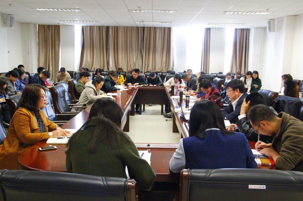 魏院长首先阐释了习近平新时代中国特色社会主义思想的主要内涵,结合专业从文学史、文学理论的角度重点讲了对十九大报告中“坚定文化自信,推动社会主义文化繁荣兴盛”这一部分的理解和认识。会上,魏院长还分享了他在清华大学“习贯彻党的十九大精神,加快‘双一流’大学建设”专题研修班上的学习心得,结合学院实际强调了学校“双一流”建设的目标举措和我们努力的方向。魏院长强调,高校教师作为传道授业解惑者,应该是中华优秀传统文化最重要的传承者,弘扬核心价值观的重要践行者,应在教育教学中贯彻、传播这种优秀传统文化,坚定文化自信,教书育人相统一,在双一流大学建设中书写奋进之笔。