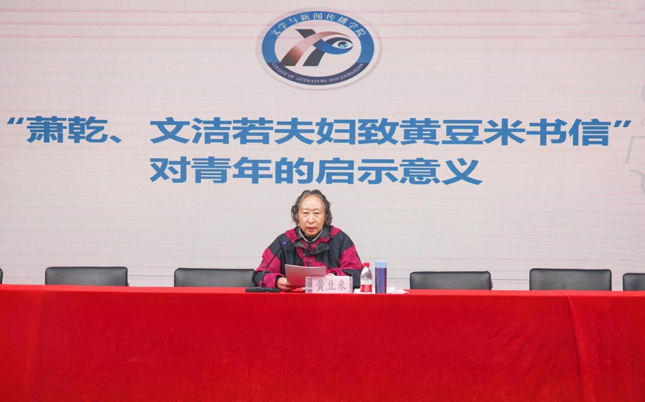 为传达萧乾、文洁若夫妇致黄豆米书信手稿的基本内容和珍贵意义,10月25日上午,黄豆米女士《萧乾、文洁若夫妇致黄豆米书信对青年的启示意义》讲座于我校南校区卓越楼一楼演播大厅举行。